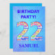 Invitation de fête du 22e anniversaire. Ajoutez un nom et vos détails pour faire une fantastique invitation de fête d'anniversaire. Les chiffres sont faits à partir de mots liés aux anniversaires pour que tout le monde soit d'humeur !