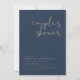 Cette invitation de fête pour couple présente une police manuscrite audacieuse avec un design moderne minimaliste et une combinaison de couleurs bleu marine et or. Modifiez toutes les couleurs et *la plupart* du texte pour répondre à vos besoins. Cette invitation pour couple est parfaite pour le couple contemporain, moderne ou minimaliste.