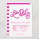 Préparez-vous à célébrer avec cette invitation festive "Let's Party" ! Avec un design rose iridescent audacieux et amusant, c'est parfait pour les anniversaires, les enterrements de vie de jeune fille ou toute réunion festive. Détails entièrement personnalisables.