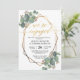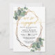 Il s'agit d'une belle invitation à la fête de fiançailles mariages avec eucalyptus et or géométrique cadre design. Un arrière - plan assorti avec un motif feuille d'eucalyptus est inclus.