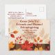 Invitation tes gens préférés à un festin d'Amies et Flannel avec cette carte postale chic et vibrante. Ce design présente un motif de feuilles d'automne avec plaid, parfait pour un rassemblement d'automne élégant et festif. Le script audacieux annonce "Friends and Flannel Friendsgiving", avec tous les détails importants à l'inverse. Cette carte postale personnalisable est un moyen simple et élégant d'envoyer vos invitations. Ajoutez simplement les détails de votre événement personnel, et vous êtes prêt à partir !