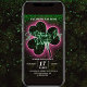 Célébrez la Saint-Patrick dans le style avec cette invitation de flyer de fête néon vert Saint-Patrick accrocheuse. Cette invitation vibrante présente un design de trèfle néon vert et rose qui créera l'atmosphère parfaite pour vos événements de la Saint-Patrick.