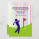 Une conception d'amusement comportant une silhouette de golfeur sur le vert sur un fond rayé coloré. Approprié à l'un ou l'autre genre et à tout âge.