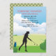 Invitez les amis à piquer avec cette invitation golf-orientée. Elle est parfaite pour une femelle, célébration de l'anniversaire des golf-enthousiastes. Elle comporte une silhouette femelle sur le vert avec un club de golf dans des ses mains sous un ciel bleu avec les nuages billowy et blancs. Il est facile customiser la carte avec vos mots, police, couleur de police et choix de six types de papier.