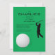 Une silhouette d'un golfeur au loin et d'un front de golf et d'un centre contre un arrière - plan vert font de cette invitation idéale pour les anniversaires, les Fêtes des pères, les retraites ou les sorties de golf. La floraison peut être agrandie ou réduite ou traînée à n'importe quel endroit. La carte est facile à customiser avec votre libellé, police, couleur de police et choix de six types de papier.