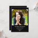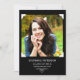 De style classique avec des onglets d'angle photo vintages de blanc sur un noir élégant, la simplicité du design fait de votre diplômé le point de convergence. Grande photo à l'avant et petite photo à l'arrière, avec tous les champs de texte faciles à customiser. Utiliser comme invitation de la partie de graduation (comme indiqué avec l'exemple de texte fourni) ou changer en faire-part uniquement. Convient aux études secondaires, collégiales ou à tout type de diplôme.