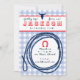 Invitation de cowboy avec le guingan bleu-clair et les accents rouges.