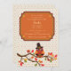 Célébrez l'anniversaire de novembre/vacances de votre enfant avec cette invitation adorable et de fête. Elle comporte un arrière - plan minuscule de point avec un hibou se reposant sur une branche d'arbre de chute utilisant un casquette de pèlerin. Votre message a un double cadre décoratif.