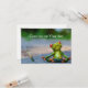 La face avant de cette invitation montre une grenouille en position lotus avec le texte, "Venez à notre classe de Yoga" et sur le dos, un endroit pour l'heure, la date et le lieu.