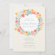 Une charmante couronne fleurie de fleurs printanières contre un arrière - plan à point de polka beige. En vedette ici en tant qu'Invitation Baby shower, vous pouvez l'utiliser comme carte de remerciements, ou comme invitation à une célébration. Vous voulez économiser de l'argent ? Imprimez ce dessin sur le papier d'angle carré de base.La carte est facile à customiser avec votre libellé, police, couleur de police, options de forme de papier et choix de six types de papier.