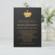 Faire-part de mariage noir élégant de 3,5 po x 5 po Golden Royal Queen Crown