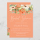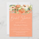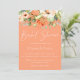 Jolie pêche aquarelle botanique arrangements floraux sur les arrière - plans de couleur cantaloupe tendance. L'invitation présente une calligraphie élégante et un design typographique moderne.