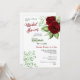 Une belle invitation à la douche nuptiale pour la période des fêtes de Noël. Les couleurs de vacances traditionnelles de vert et rouge figure en évidence par les roses rouges et le feuillage vert. Nous avons laissé le fond blanc de l'invitation mais vous pouvez ajouter une couleur gratuite si vous le souhaitez.