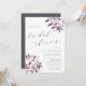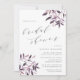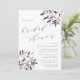 L'élégante invitation à la douche nuptiale rustique présente des lettres gris mou dans un bloc chic et de l'italique avec des accents calligraphiques, avec des vaporisations de feuillage de chute d'aquarelle aux coins dans des tons muets de rose roux, lavande et bordeaux.