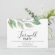 Vas-tu déménager ? Cette fête d'adieu invite invitations famille et amis à votre fête d'adieu. Il est décoré avec de l'aquarelle botanique verdure et élégante typographie de script. Facile à personnaliser. Aquarelle originale © Michele Davies.