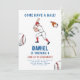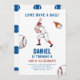Montez à l'assiette et tournez-vous pour vous amuser avec notre invitation à la fête d'anniversaire de baseball! Frappez un home-run avec vos invités en les invitant à une fête sur le thème du baseball qui sera certainement un grand slam. Personnalisez ce design sportif avec les détails de votre fête et donnez à votre événement le ton parfait. Jouez à la balle et commandez maintenant pour un inoubliable bain d'anniversaire!