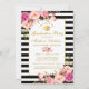 Carte d'invitation à la fête de graduation Florale Aquarelle rose avec bandes noires et blanches