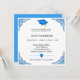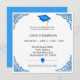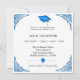 Classic mais Bold Graduation Party Invitation a un arrière - plan blanc avec des coins bleus et des lettres bleues audacieuses. Idéal pour les gars ou les filles. Ajoutez les détails de votre fête et la fête sur.