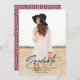 Faire-part de graduation en typographie géométrique et invitation de fête. Avec une typographie audacieuse et un texte de script tendance. L'arrière - plan géométrique de couleur bordeaux peut être modifié.