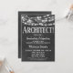 Une amusante invitation à la remise des diplômes d'architecte en tableau noir et blanc avec des lumières brillantes au sommet.