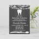Un amusant dentiste en tableau noir et blanc ou hygiéniste dentaire invitation de remise de diplômes avec des lumières brillantes au sommet.