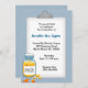 Le moment est venu de fêter une fête et de fêter la fête. Cette invitation de graduation a un Porte - bloc bleu avec une bouteille de prescription en bas qui peut être customisé. Le dos a une caducée avec un coeur rouge. Idéal pour un pharmacien ou une infirmière diplômée.