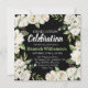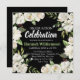 Superbe présentation de pivoines blanches encadre cette invitation de graduation carré noire. Tout le texte est blanc, sauf le nom du diplômé. C'est un vert clair et lumineux qui correspond à la plupart des feuilles de pivoines.