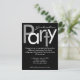 Jolie invitation à la fête de remise de diplômes, customisez avec votre nom, l'école et les détails de la fête. Style de bloc amusant et gai lettrage en gras contraste élevé noir et blanc sur arrière - plan noir. Un design contemporain élégant est parfait pour les invitations à une fête d'homme ou de femme. Customisez en ligne avec les détails de votre événement.