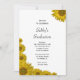 Invités Invitations pour célébrer la réalisation de votre élève avec la jolie Sunflower Edge Graduation Party Invitation. Personnalisez-le avec le nom du récent diplômé du lycée ou du collège et les détails spécifiques de votre célébration. Cet invitation de fête florale mignon et personnalisé présente des fleurs de tournesol jaune ornant les coins d'un arrière - plan blanc. Parfait pour la fille qui aime les tournesols.