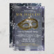 Unique arrière - plan bleu foncé avec parties scintillant flocons de neige avec masque de carnaval doré/blanc masqué. Belle invitation de fête du Nouvel An retravaillé le 21 octobre 2023 pour permettre une largeur maximale à tous les champs de texte.