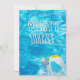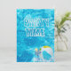 Invitation de la piscine avec cocktail et ballon de plage dans une eau turquoise.