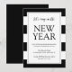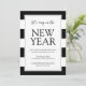 Ces invitations à la fête du Nouvel An, élégantes et modernes, présentent de simples rayures noires et blanches, avec des polices audacieuses et élégantes.