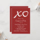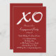 Un "XO" blanc vif décore cette invitation fiançailles sur un arrière - plan rouge profond, en la rendant chic, tendance, romantique et élégant, parfait pour la Saint-Valentin ou la fête de Noël.