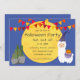 Mignonne lama blanche dans un casquette de sorcière violette portant un jack o'lantern. Drapeau de fête d'automne coloré, pleine lune jaune, et cactus en fleurs pour une belle et amusante Halloween. Idéal pour une fête d'enfants.