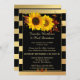 Une invitation romantique à la fête de mariage avec des tournesols, des feuilles d'automne et des tourbillons floraux d'or rose sur un arrière - plan rayé d'or chic sur votre couleur de fond personnalisée. Idéal pour une réception uniquement ou une fête après le mariage.