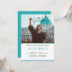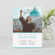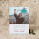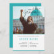 Invitation minimaliste à une photo de remise de diplômes. Texte personnalisable en gris et bleu.
