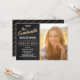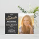 Invitations de fin d'études avec photo personnalisée. Tableau de bord et feuille d'or faux. Retiré.