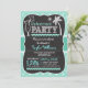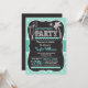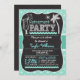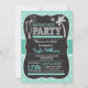Tropical été plage thème de la retraite invitation de la partie avec chalkboard rétro polices de look sur aqua turquoise cercles motif. L'invitation comprend un cocktail à l'allure de craie et une partie de palmier avec des éléments de conception ric rac.