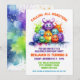 Une jolie carte d'invitation pour la fête des petits monstres. Parfait pour les fêtes d'enfants ou les fêtes d'Halloween, cette carte d'aquarelle d'art présente d'adorables petits monstres aux couleurs vives. Playful et charmant, c'est la façon parfaite de donner le ton pour un événement amusant et magique.