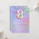 Invitation de fête de 8e anniversaire parties scintillant rose violet goutte d'invitation de fête de 8e anniversaire pour une fille de 8 ans avec écriture de script moderne et des ballons de papier amusant.