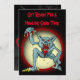 Invitation amusante à personnaliser pour votre soirée costumée d'Halloween annuelle. Cette invitation d'Halloween présente un loup-garou gris sanglant qui vous invite à passer un bon moment. La pleine lune et une scène nocturne brumeuse sont à l'arrière avec toutes les informations de fête pour vous de personnaliser.