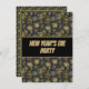 Bague dans la nouvelle année avec cette belle invitation de fête noir et or. Feu d'artifice en or et argent sur un arrière - plan noir. Le dos est un cadre de feu d'artifice avec les détails de la fête inclus dans un cadre de couleur or.