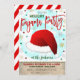 Invitation de Noël. Le design tendance et unique présente un design amusant casquette santa avec une aquarelle bleue et un arrière - plan en faux bois. Utilisez cette invitation de fête de Noël en pyjama pour vos fêtes de fin d'année de toute sorte - le texte est modifiable!