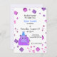 Un gros hippo violet portant un casquette de fête, prêt pour une fête d'anniversaire accentue cette invitation amusante. Une bordure de cubes et de motifs amusants ajoute un attrait amusant. Customisez avec toutes vos informations comme vous le souhaitez.