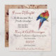 Invitation Personnalisable à une soirée pirate. Ajoutez facilement vos propres détails en quelques minutes. Image d'un perroquet avec une ancienne carte défraîchie pour le arrière - plan. L'arrière de l'invitation montre la carte en pleine couleur avec un crâne et un symbole "Jolly roger" croisé au milieu. Chaque invitation du Parti Pirate est complétée par une enveloppe.