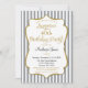 Une élégante invitation à la fête d'anniversaire en gris et or, avec des rayures grises et blanches et un cadre texte de parties scintillant en or. Le cadre de texte de parties scintillant sur cet invitation de fête d'anniversaire classique et classe présente une ombre pour donner un aspect surélevé. Cet invitation de fête aux couleurs grises et dorées fera plaisir à cette vedette d'anniversaire de votre vie. Parfait pour les anniversaires jalons tels que 18ème 20ème 21ème 30ème 35ème 45ème 55ème 55ème 60ème 65ème 70ème 75ème 80ème 85ème 90ème 95ème et 100 ...ou n'importe quel âge !