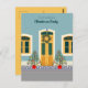 Cette illustration festive et élégante de Noël présente la façade bleue d'une ancienne maison portugaise traditionnelle ornée de portes et fenêtres en bois jaune et de balcons en fer forgé. Un trottoir portugais agrémente le trottoir, tandis que deux arbres de Noël ornés de boules de Noël colorées se tiennent à l'entrée. Une couronne de Noël grace la porte. La scène saisit l'essence du Noël portugais dans les rues, un mélange harmonieux d'architecture traditionnelle et d'esprit de fête joyeux. Il y a aussi un motif de carrelage bleu et blanc, typiquement portugais. Mais comme il s'agit d'un produit destiné à Noël, les motifs de ce motif de Noël présentent des feuilles saints et des baies. Cette création est parfaite pour envoyer/invitation une famille ou un ami portugais, un proche parent, quelqu'un d'héritage portugais, ou toute personne qui apprécie la richesse des traditions portugaises à une fête de Noël pour célébrer la joie de vivre ensemble avec une délicieuse cuisine portugaise, une conversation animée, et une compagnie merveilleuse! Supprimez, ajoutez ou modifiez facilement les mots et leur police avec l'outil de design Zazzle.