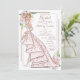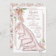 Une invitation à la douche nuptiale à fleurs roses présente une mariée pour être dans une robe mariage parties scintillant en or rose. Choisissez la couleur des cheveux et de la peau pour correspondre à la mariée.