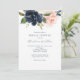 Invitations modernes de douche nuptiale bleu marine et rose vif! Ces invitations seront parfaites pour une douche nuptiale moderne et élégante ! Ces invitations comprennent des fleurs de marine peintes à l'aquarelle et des fleurs rousses aux accents d'or.