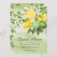 Invitations de douche nuptiale pour le mariage d'été avec un arrière - plan d'aquarelle verte, citrons & citrons d'agrumes, fleurs blanches, feuillage botanique, et un modèle de fête nuptiale élégant qui est facile à personnaliser.